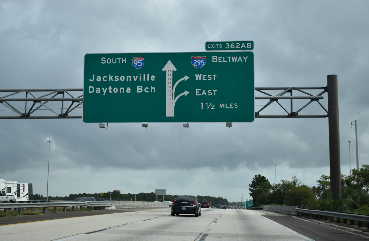 The section of I-95 where the main road meets with the beltway route I-295, designed to bring drivers around the city of Jacksonville.