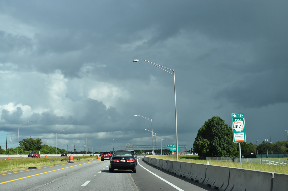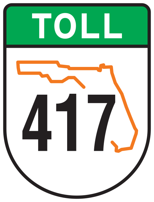 The next road is an toll road, for the hurring drivers as well as the big spenders. SR 417/Central Florida Greeneway, known for bypassing most of Orlando's popular areas such as the Disney parks, Gatorland, University of Central Florida, Orlando International Airport